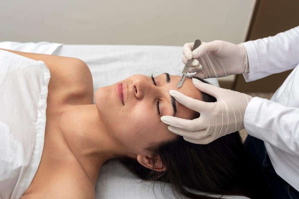 Dermaplaning is a non-invasive cosmetic treatment that involves scraping off dead skin cells and peach fuzz with a scalpel to leave your face brighter and smoother. It can be added to any of our facials and some of our chemical peels for enhanced results.